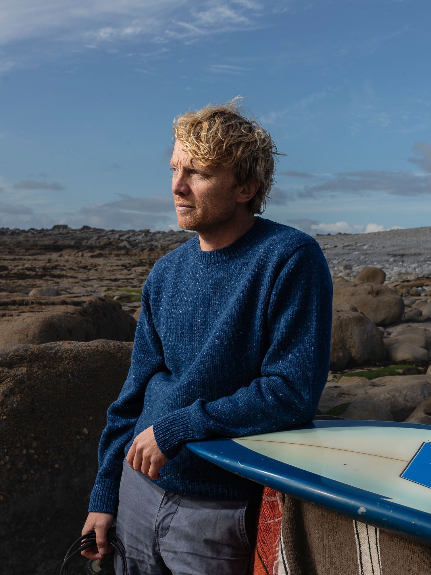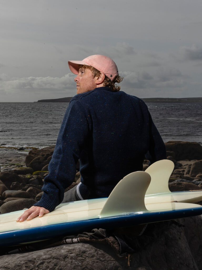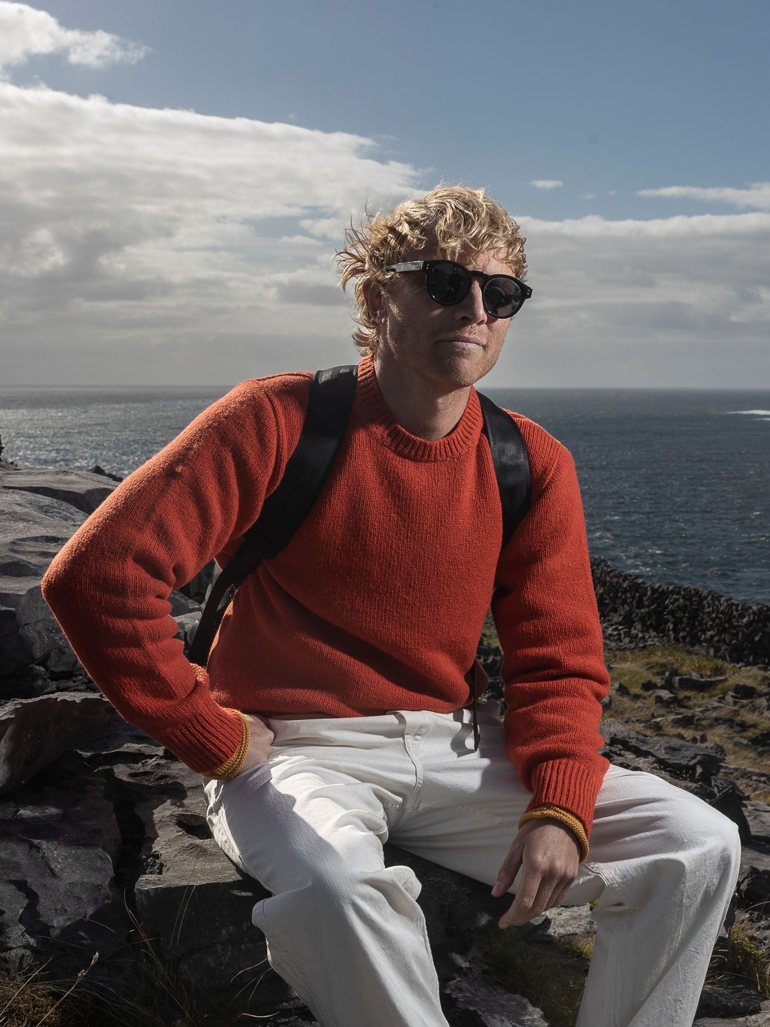 Available in Navy Fleck, a rich navy with a subtle mix of muted blue, green and rust highlights; Orange, a beautifully balanced shade of clementine with a deep but gentle brightness and Blue Fleck, a versatile rich blue with subdued aqua and pearly white flecks. Designed, made and hand-finished in our Aran Island's workshop.
