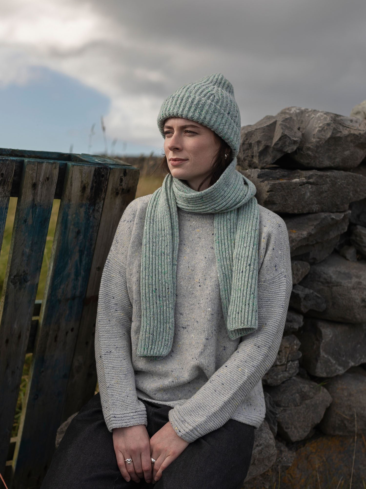 Available in Beige Fleck, a warm marl shade with subtle cream and light tan highlights, a new addition to the continuing popular colour ways of Charcoal Fleck, a versatile dark grey highlighted with flecks of warm orange and snowy white, Silver Fleck, a light grey marl with subtle navy and soft yellow flecks, Tan Fleck, a luxurious camel with flecks of cream, rust and chocolate brown and Red Fleck, a warm crimson with subtle orange and amber flecks. Designed, made and hand-finished in our Aran Islands workshop.