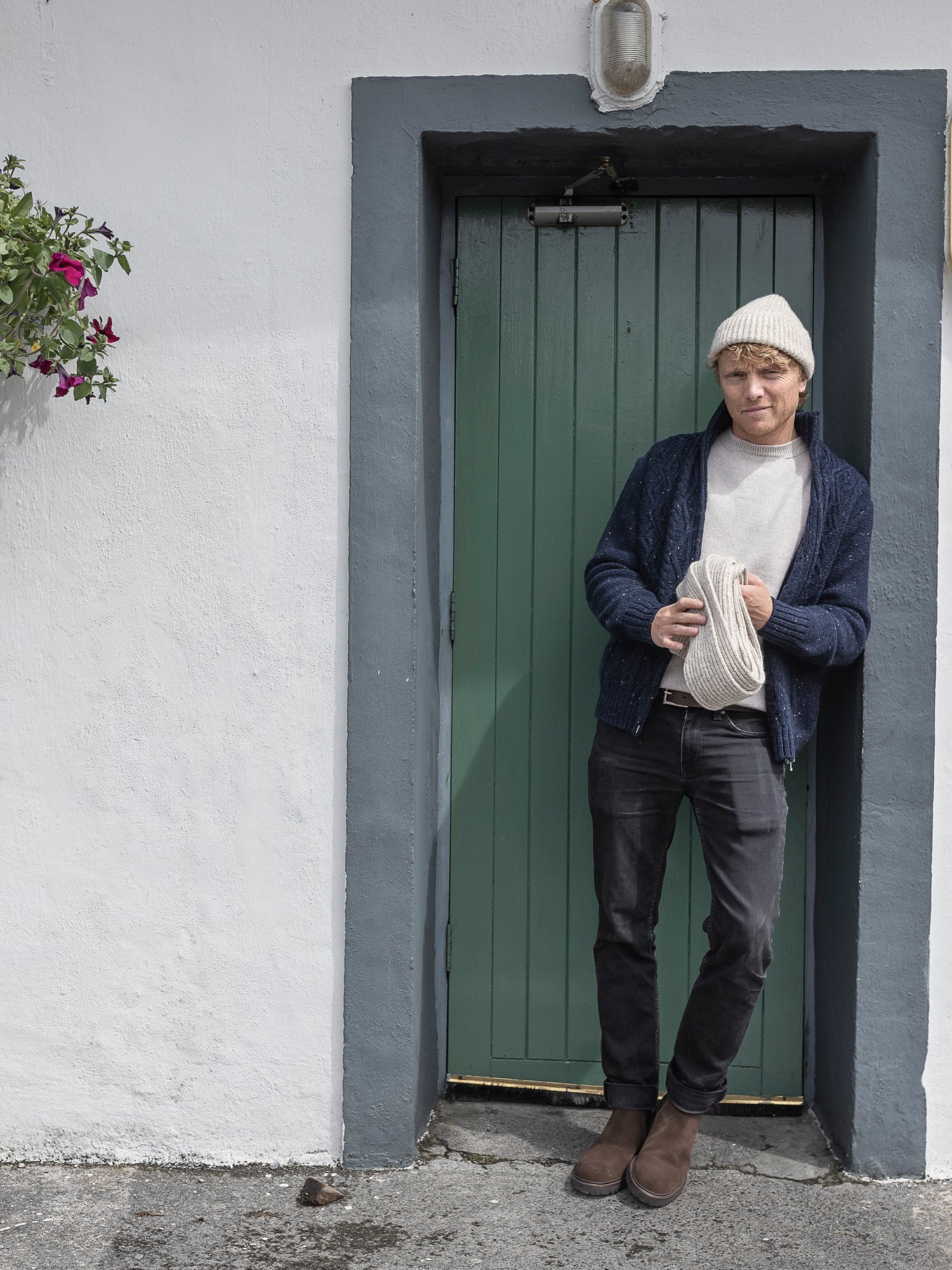 Available in Black Marl, rich black highlighted with flecks of white, and soft, natural Sand Marl. Designed, made and hand-finished in our island workshop in Inis Meáin.