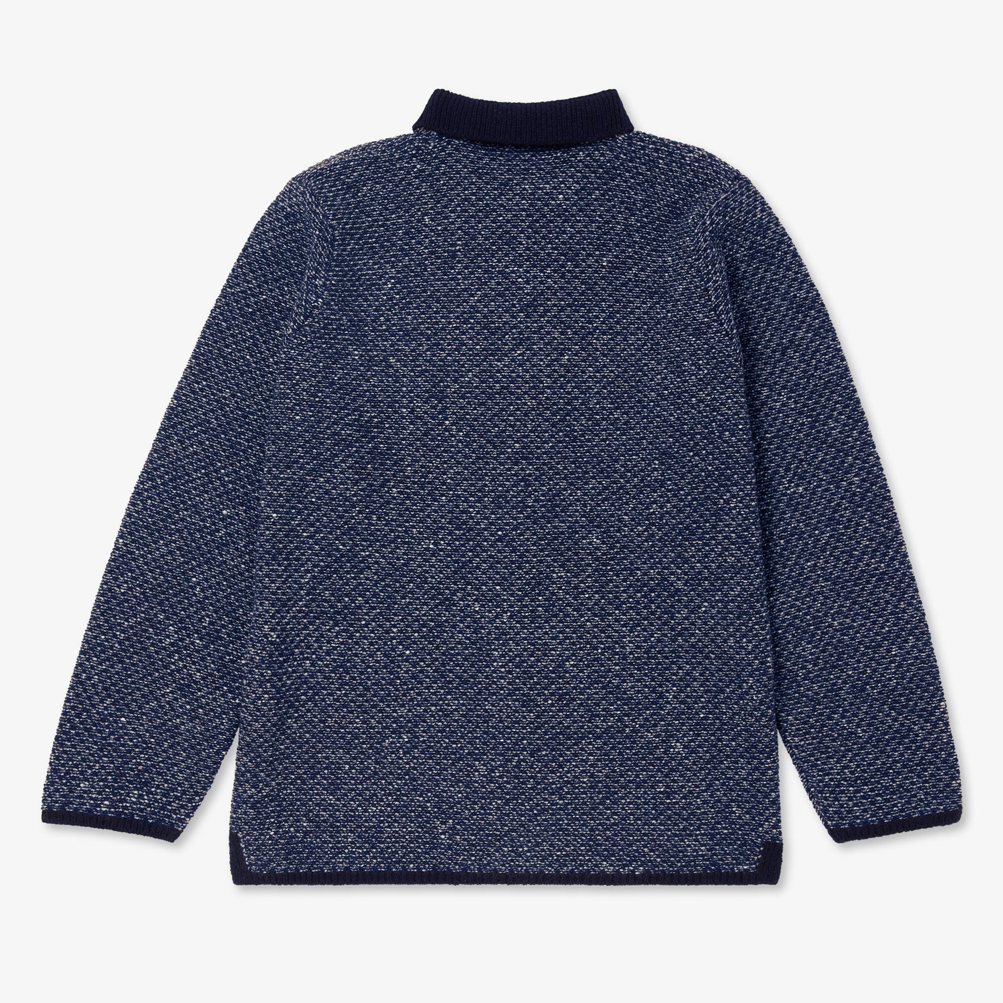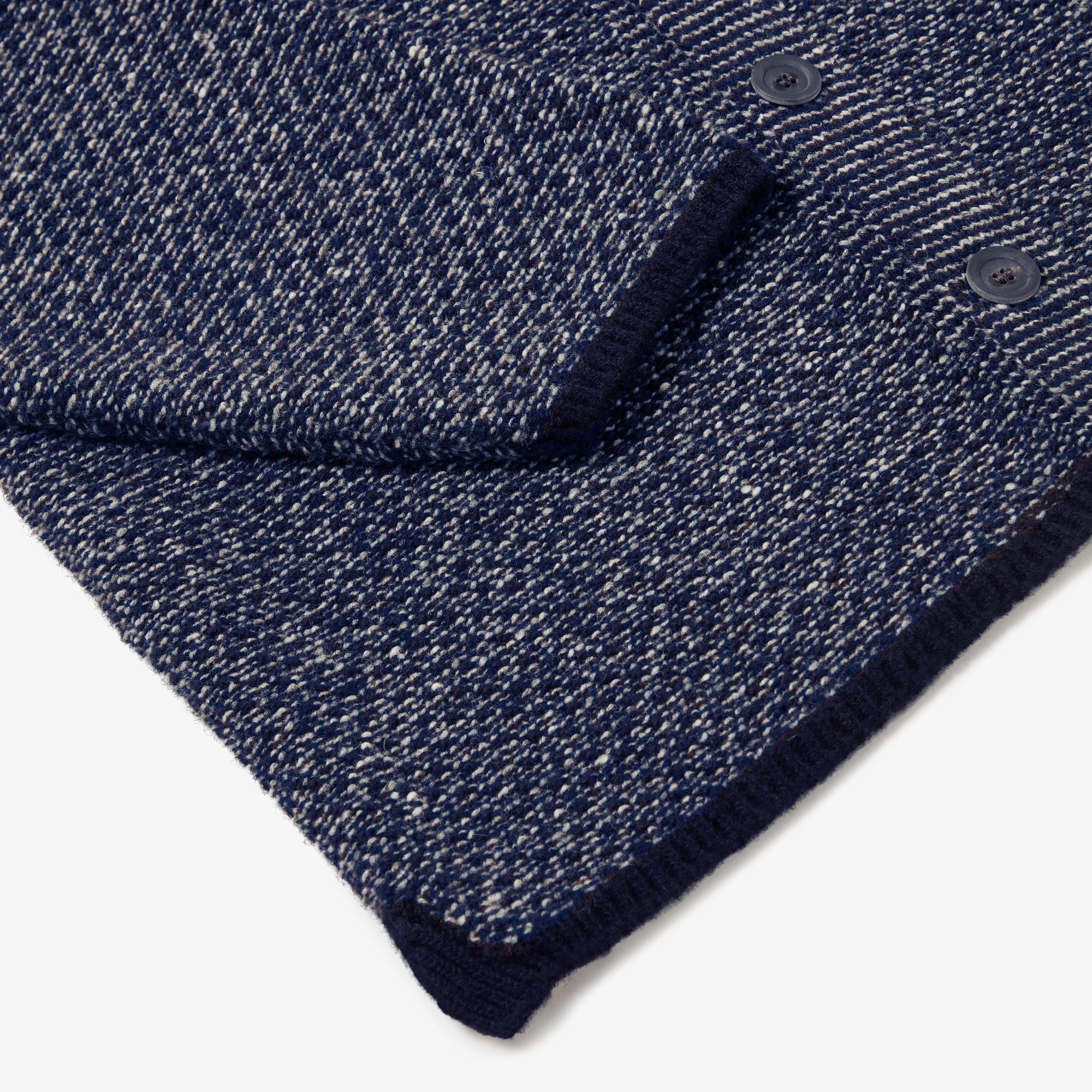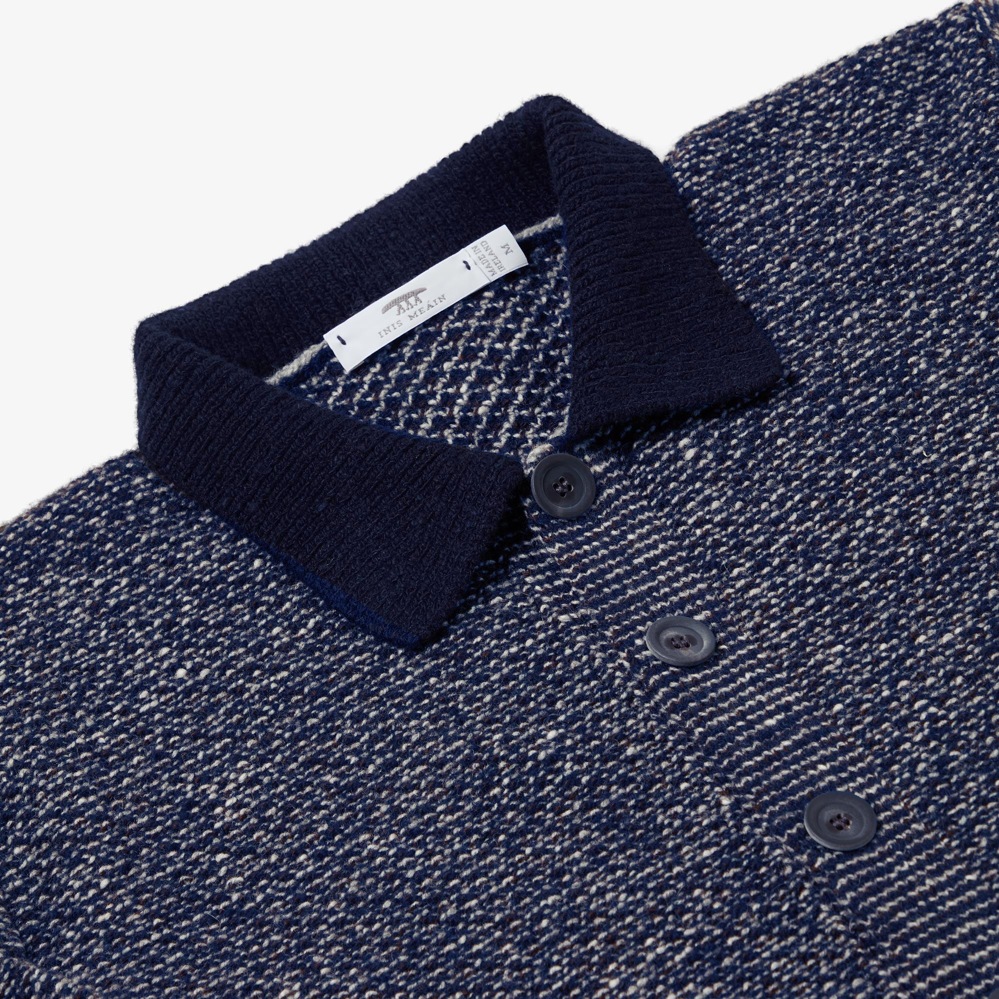 Available in Blue Mix, a true maritime navy shade with electric blue and white highlights, grounded with navy trims on the collar and hems. Designed, made and hand-finished in our Aran Islands workshop.