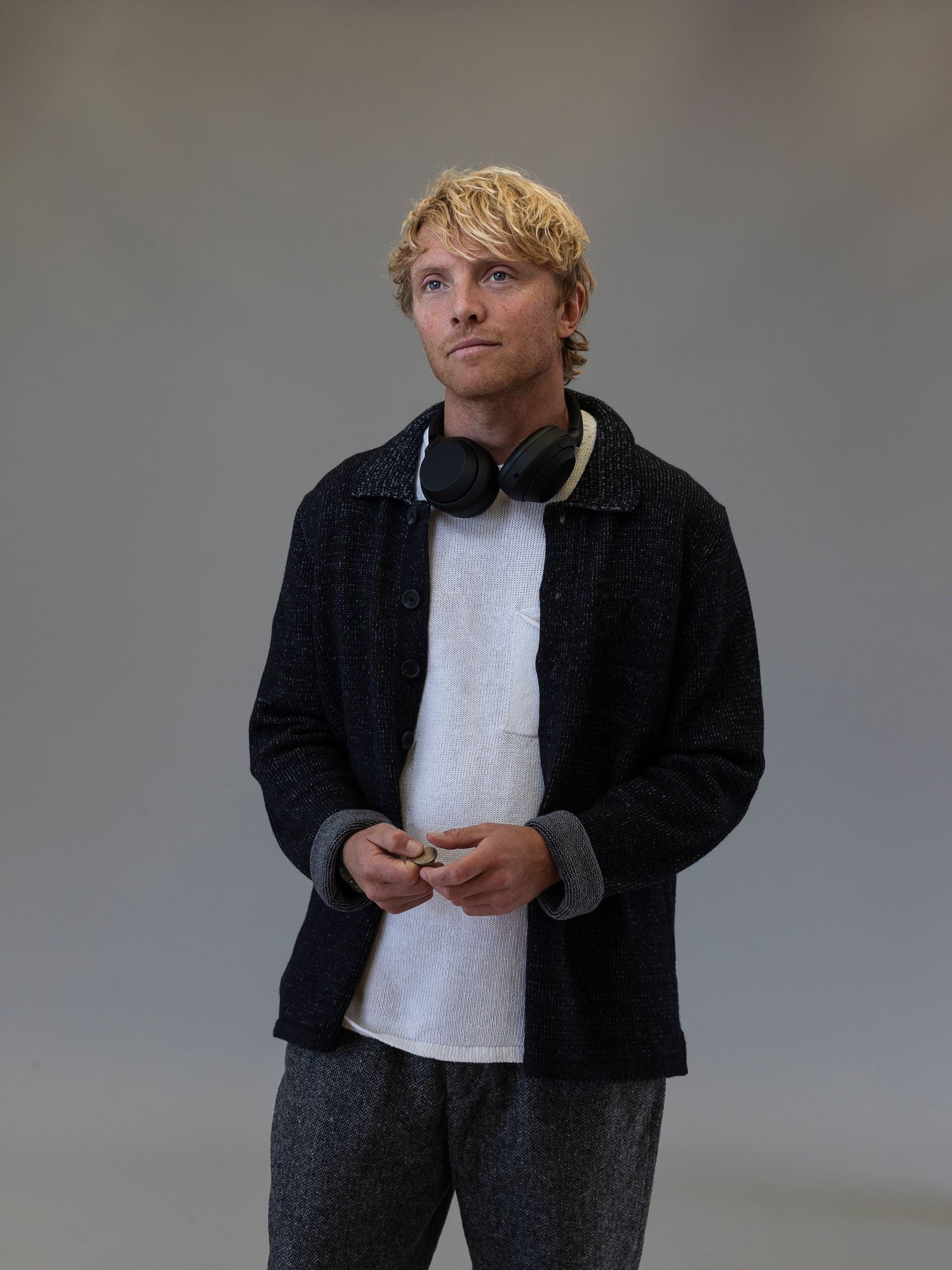The classic shirt pattern that was once such a staple of the Island tailor's repertoire, is reinvented as a beautiful jacket. Favoured for its sophisticated cut and simplicity. An inside breast pocket adds functionality to this classically elegant style. Finished with distinctive buffalo horn buttons. Knitted in extra soft baby alpaca and silk, and plated with super-premium Cashmere and Merino for additional stability. Favoured by creatives for the cool cut and multitude of pockets for those lens caps and pencils.