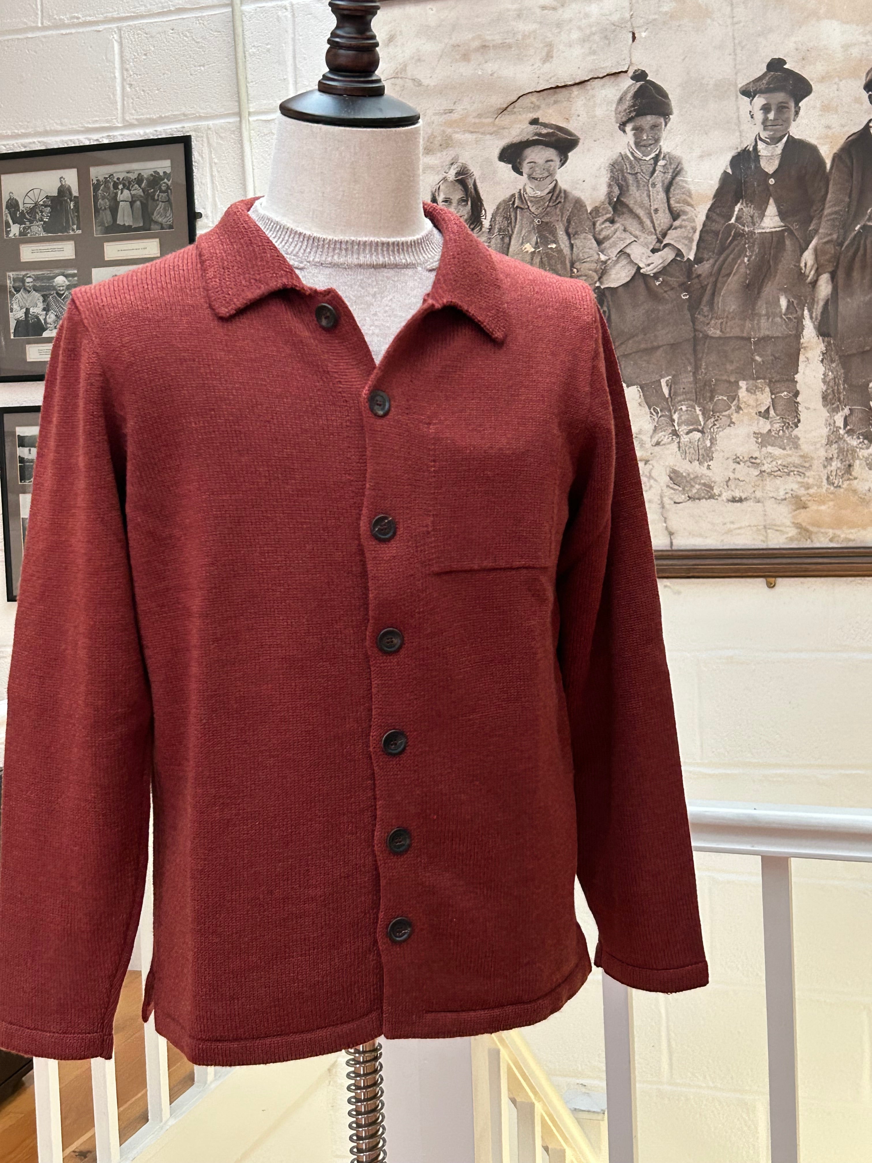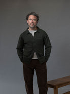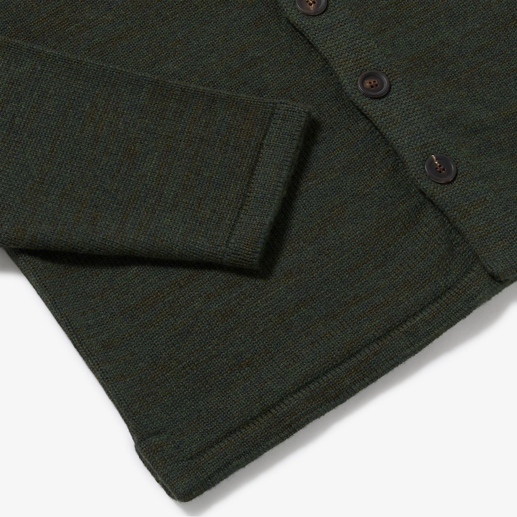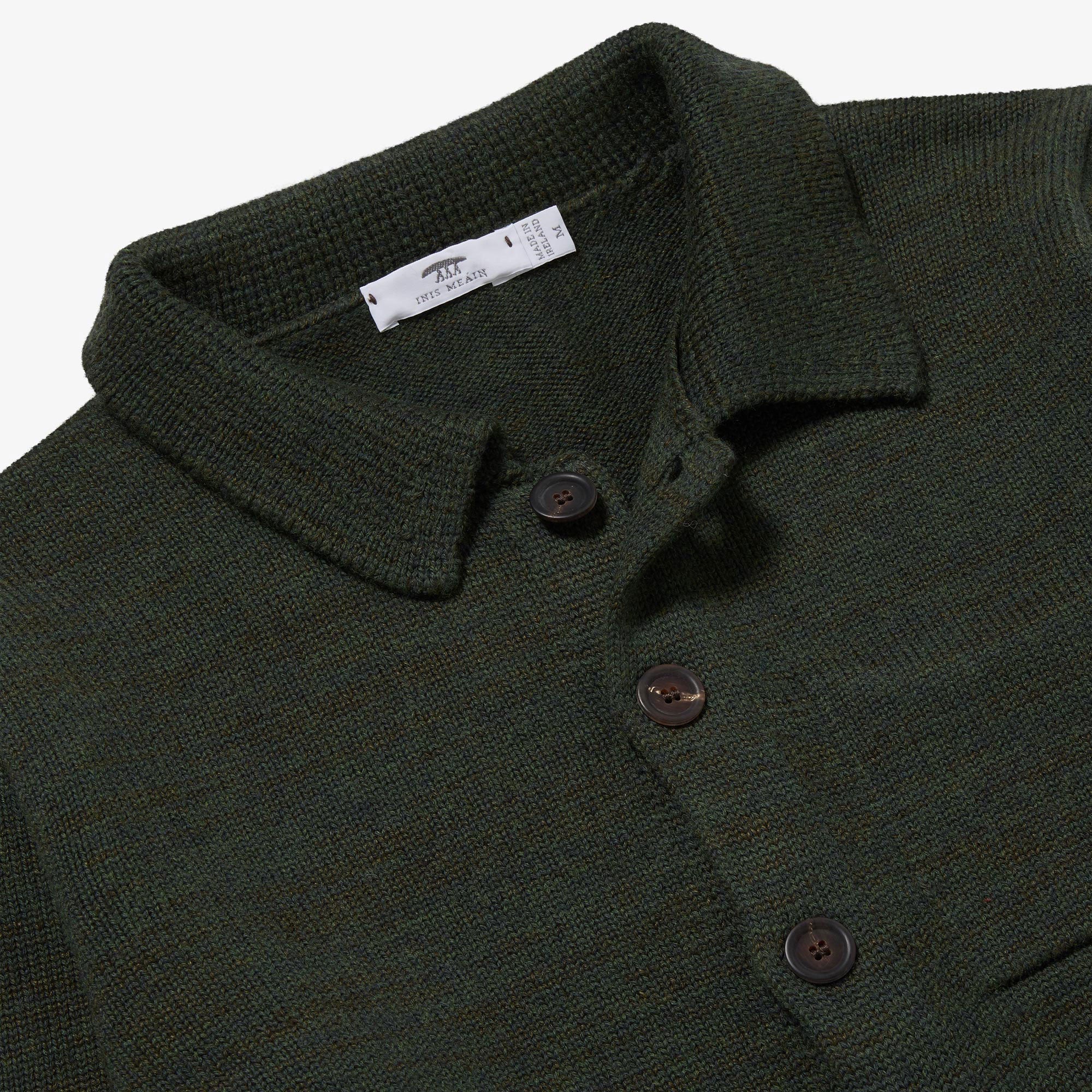 A brand new yarn composition for Autumn/Winter 2025 is our in-house blend of superfine Merino and Linen. The linen serves to make the garment more airy and breathable and creates a beautifully nuanced colour-shading effect as the Linen strands catch the light differently to the Merino. It also creates a depth of feel and texture with little bursts of crispness scattering amongst the Merino softness. With this innovative yarn blend we've created a new version of our signature Shirt Jacket. A staple of the Island tailor's repertoire reinvented as a beautiful jacket and favoured for its sophisticated cut and simplicity. An inside breast pocket adds functionality to this classically elegant style. Finished with distinctive buffalo horn buttons.