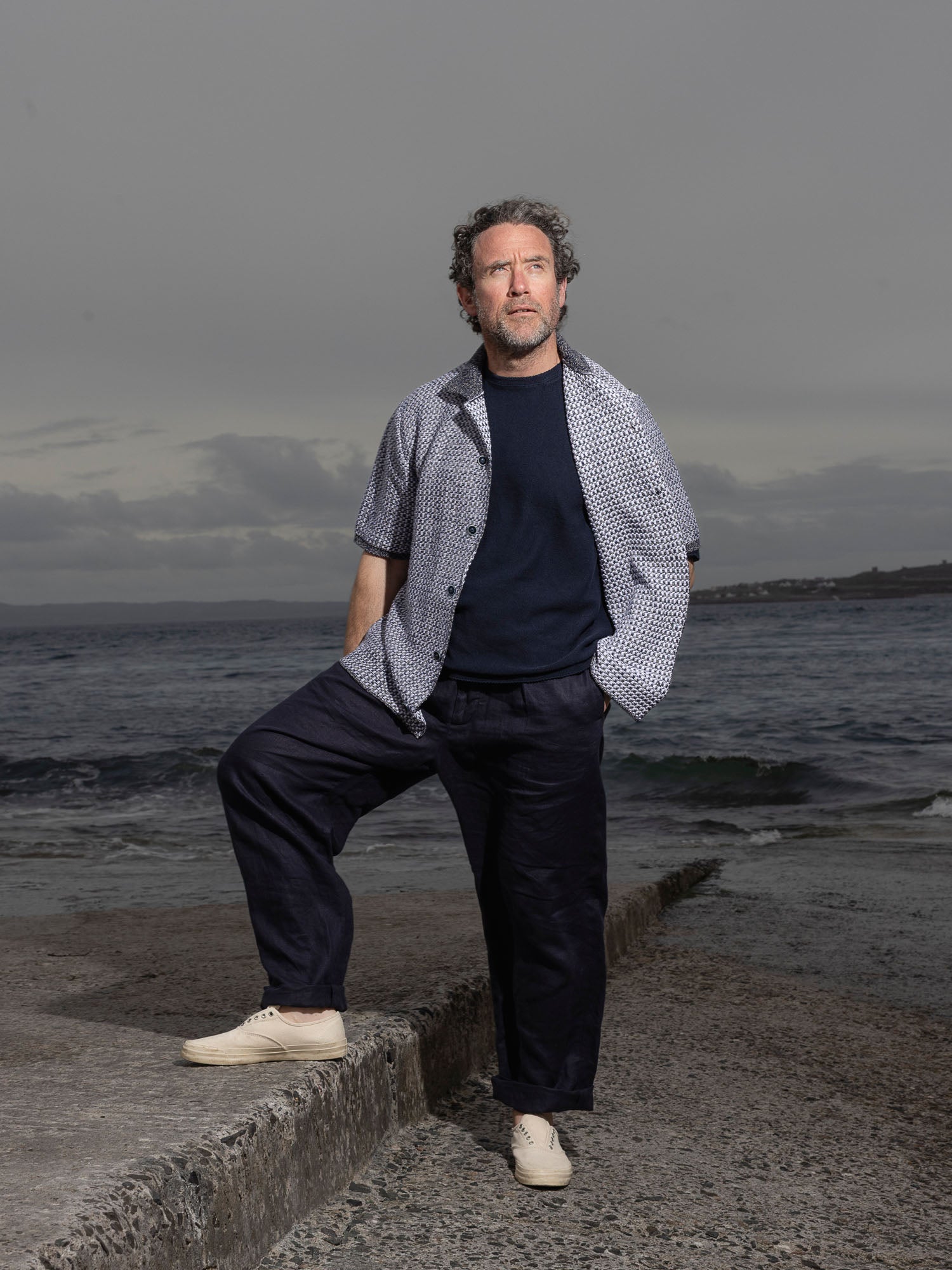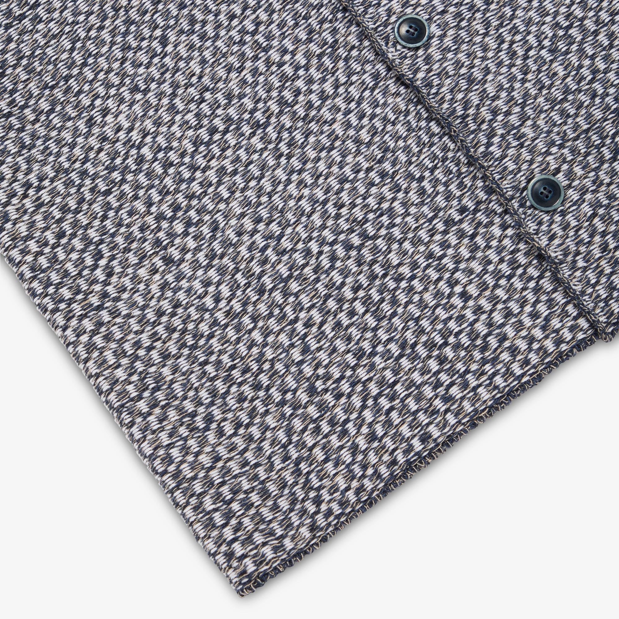 Tonnta, the Irish for Waves, was the inspiration behind our brand new Tonnta Line, a statement collection fusing rich stitch detail together with contemporary design. The Tonnta Short Sleeve Shirt is one of these eye-catching new styles featuring contrasting collar and cuffs and a full button closure that can be worn open to reveal hints of its striking interior fabric. Knit in a special yarn combination of Cashmere, Linen and Cotton for the highest quality handle.