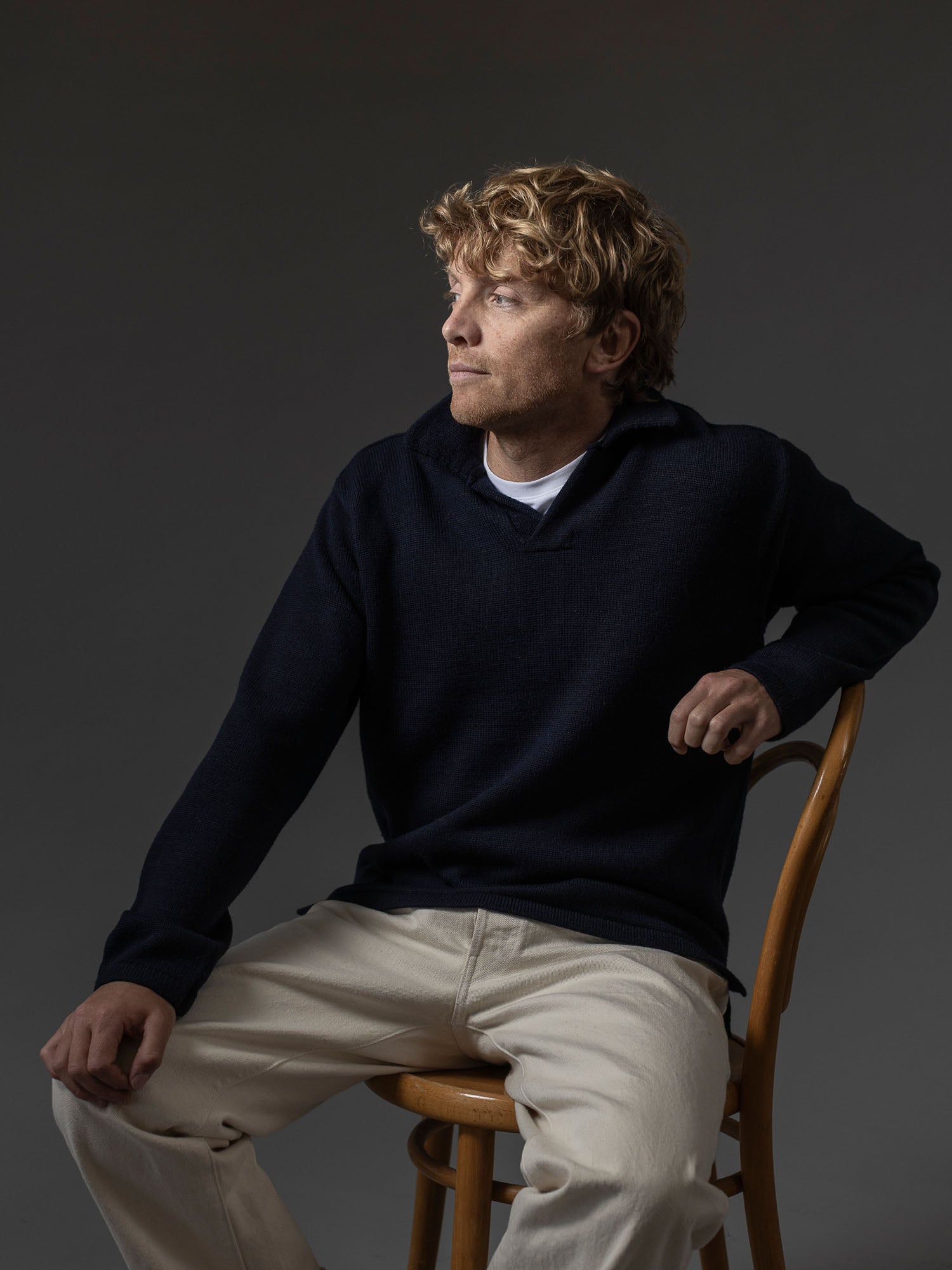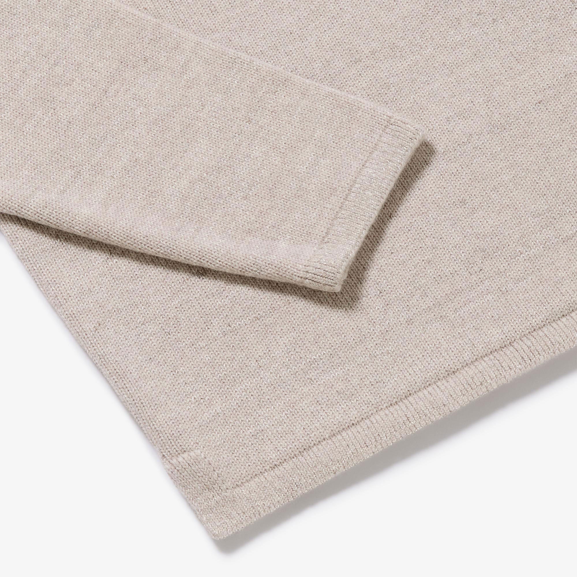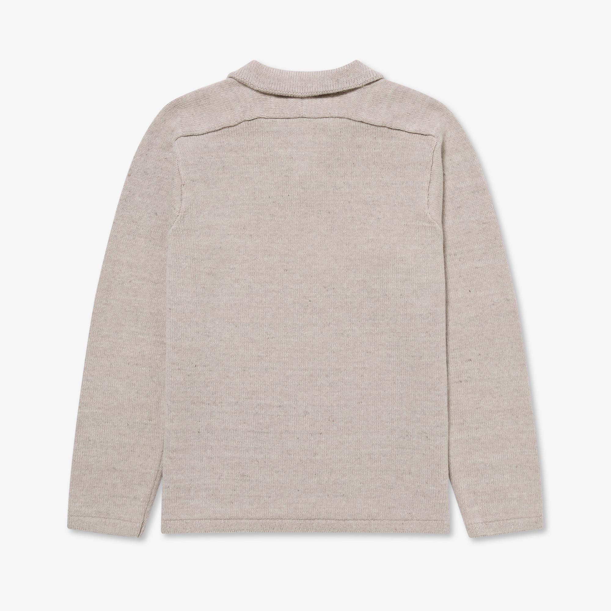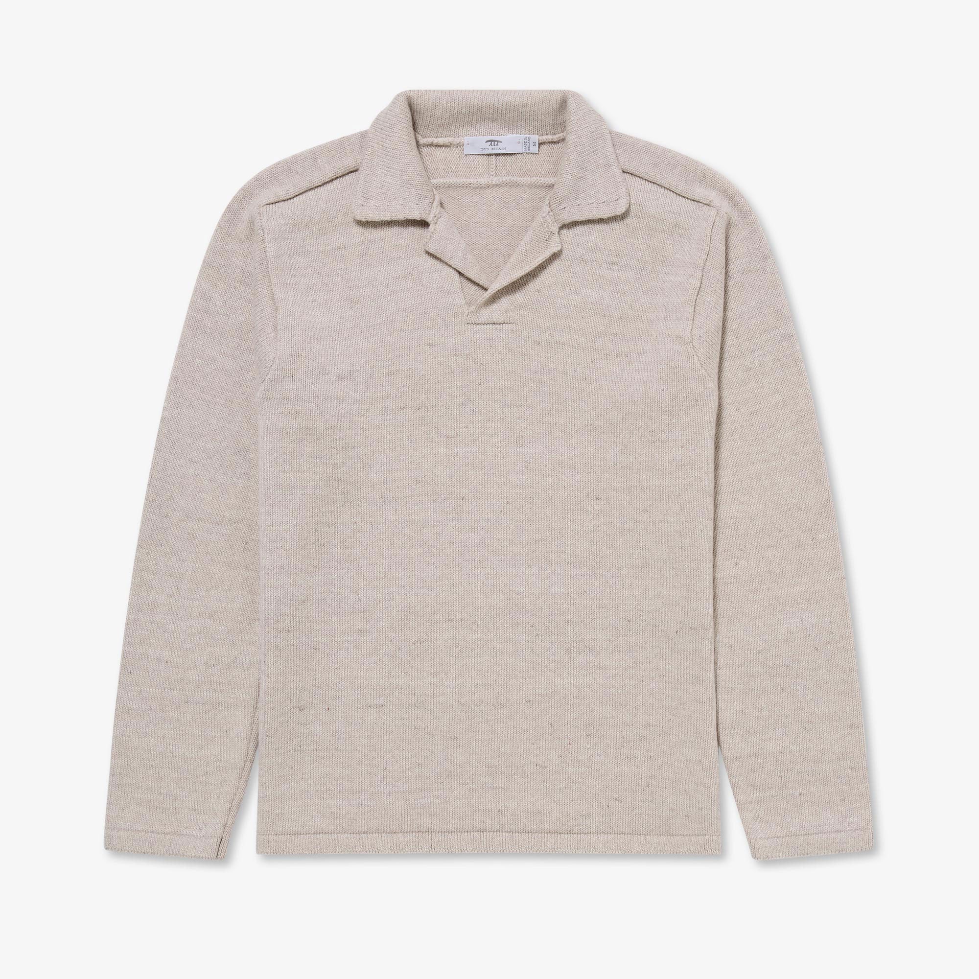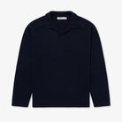 A brand new yarn composition for Autumn/Winter 2025 is our blend of superfine Merino and Linen. The linen serves to make the garment more airy and breathable and creates a beautifully nuanced colour-shading effect as the Linen strands catch the light differently to the Merino. It also creates a depth of feel and texture with little touches of crispness scattered amongst the Merino softness. In a new style for this season, the Textured Buttonless Polo features a beautifully constructed saddle shoulder creating optimum comfort across the shoulders, back and neck. A refined yet relaxed go-to.