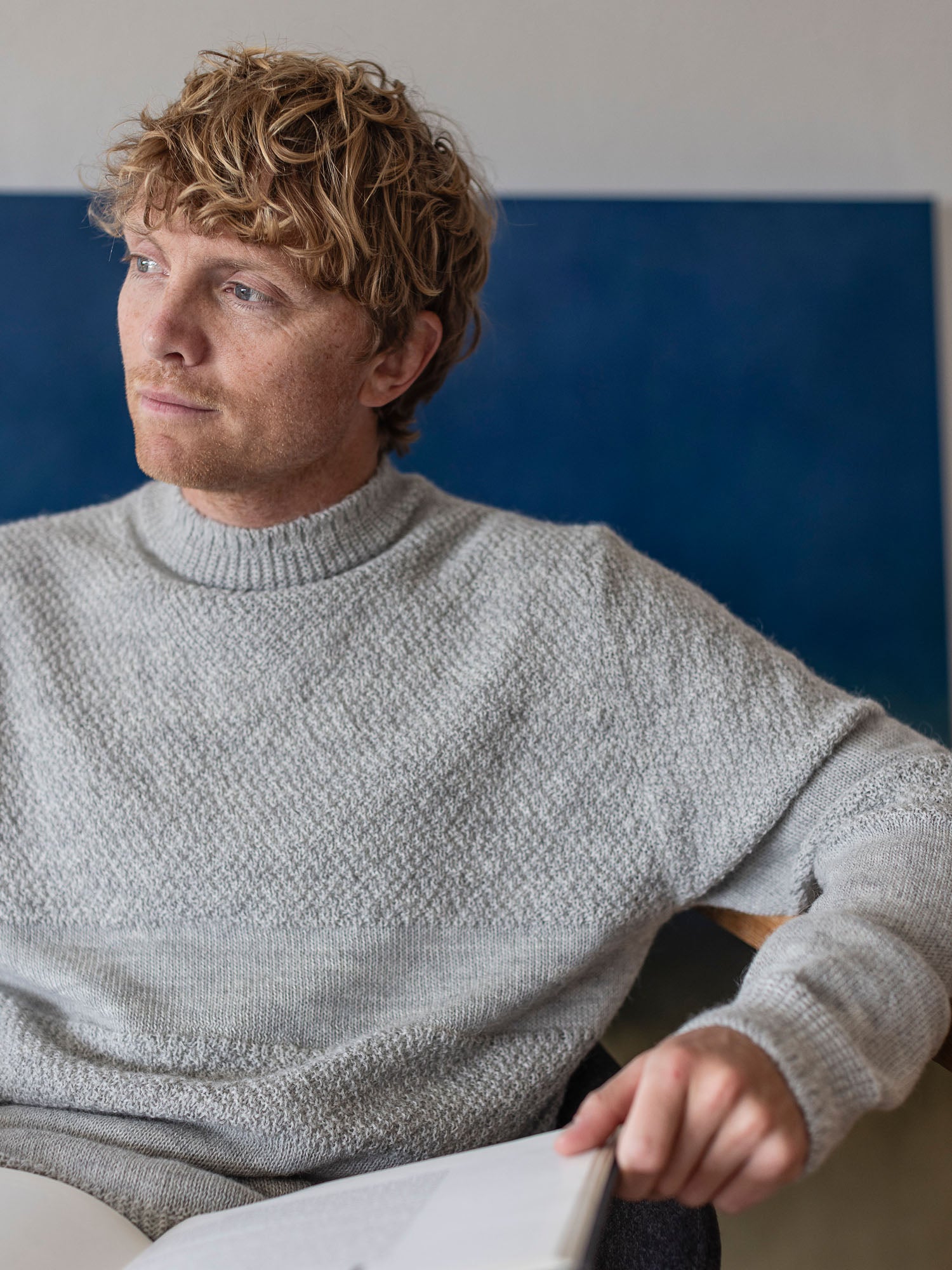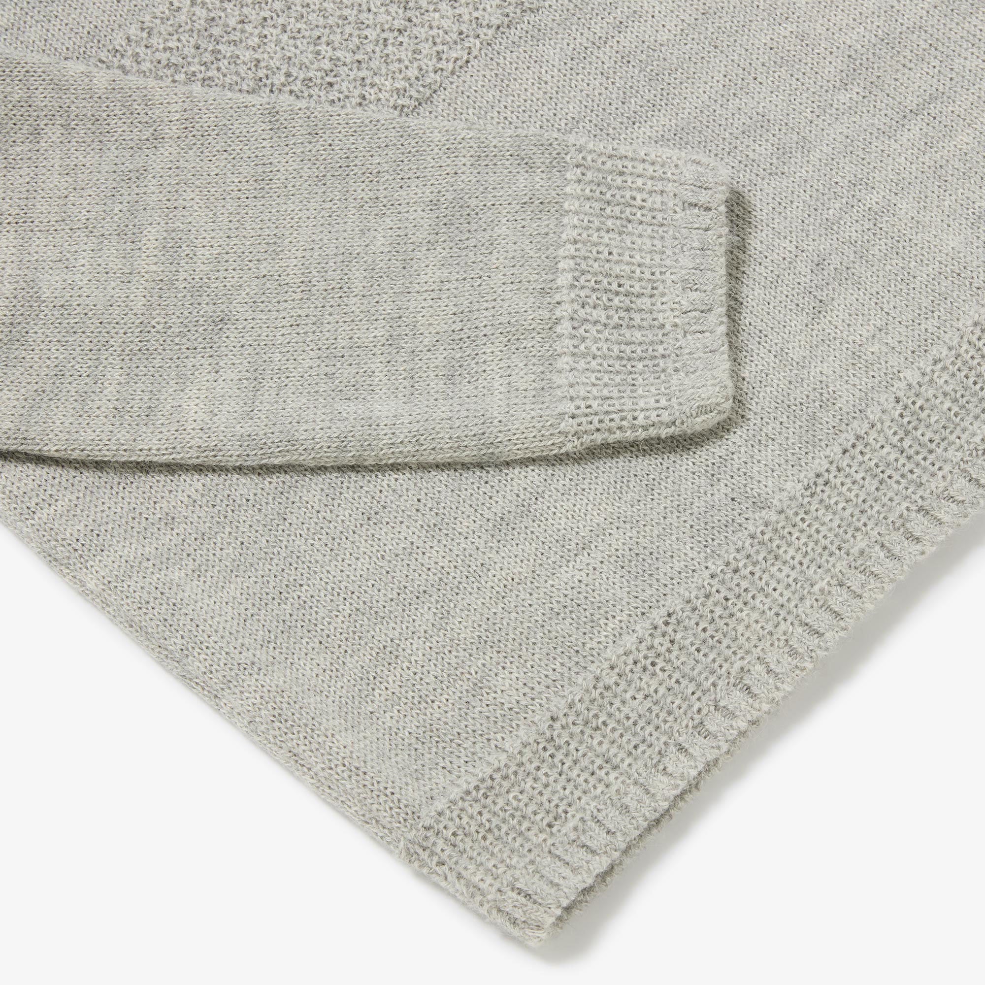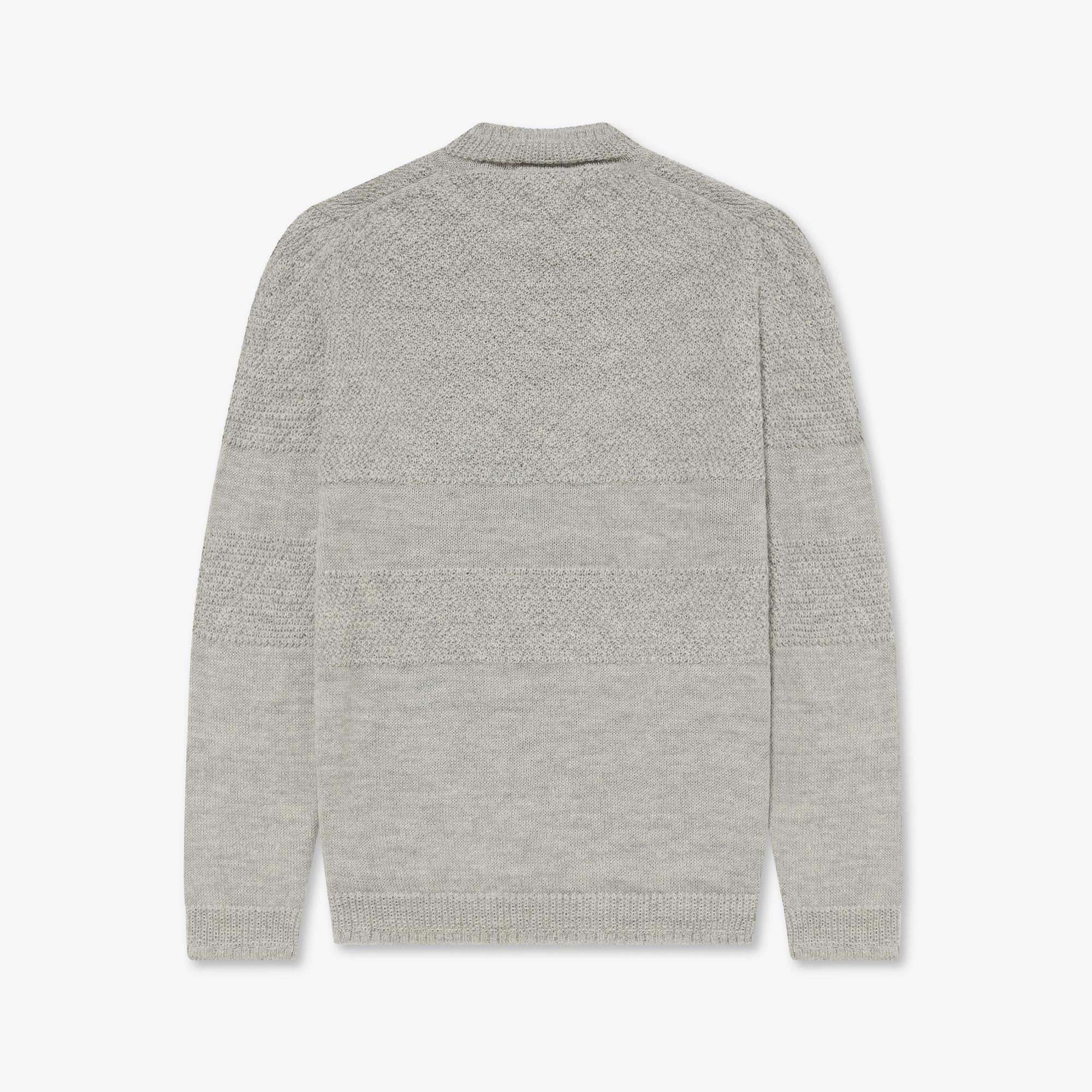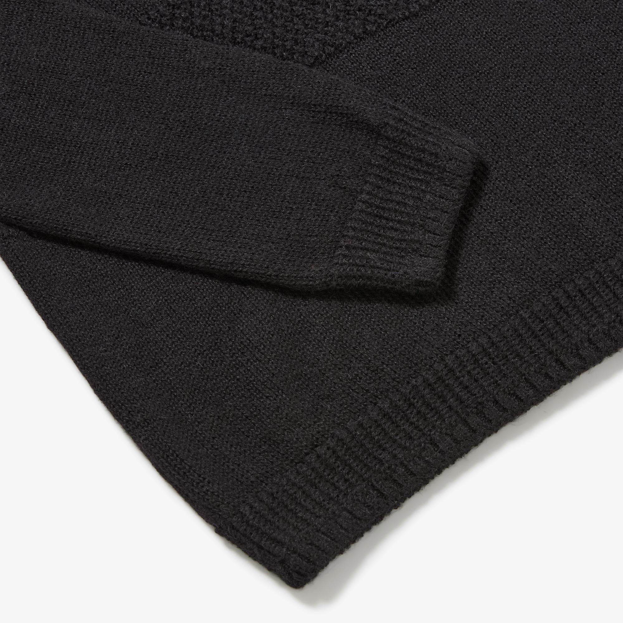 The Undyed Alpaca Worker's Tunic is a beautifully soft piece with a sleek drape. Knitted from undyed boiled Alpaca yarn, this sweater features panels of moss stitch across the chest and arms. The trims also feature plain and purl contrasting sections, creating a very detailed sweater, yet one that can be dressed up or down for any occasion.