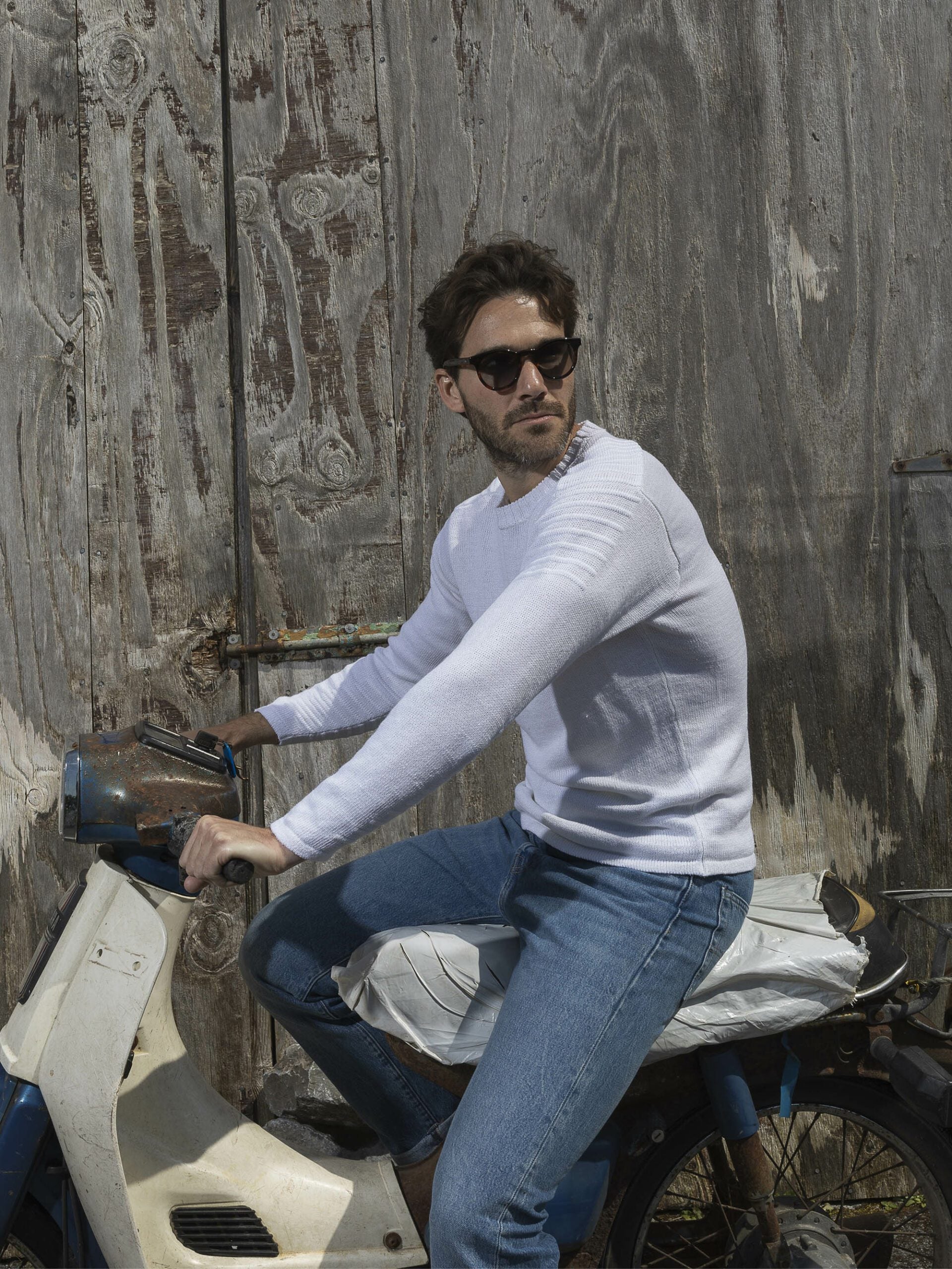 When Honda scooters first arrived in Ireland over sixty years ago, they could have been custom-designed for the island's winding narrow roads. In homage to the ever-popular ‘nifty fifty', we designed a light crew neck with distinctive biker jacket-inspired details. This popular style features a unique ribbed saddle shoulder and further biker-rib detailing on the lower sleeve. European Masters of Linen quality guarantees European linen of the highest standard and traceability from field to yarn.